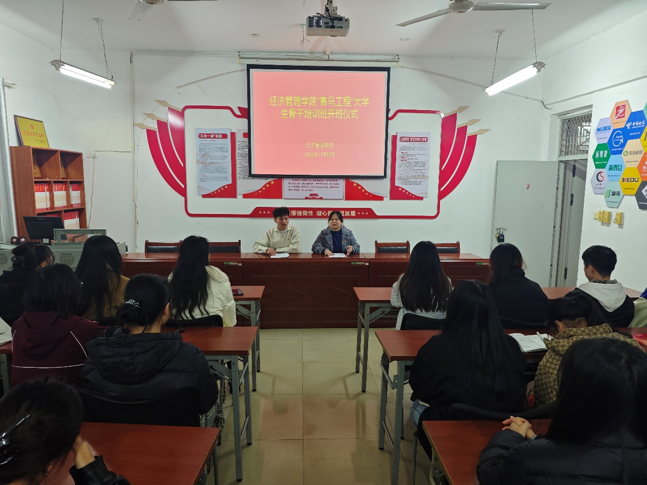 为了培养优秀学生骨干,提升其综合能力素质。11月20日,经济管理学院在A401会议室举办“青马工程”大学生骨干培训班开班仪式,本次开班仪式由党总支专职组织员胡文秀主持,同学们积极参与。
