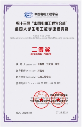3.获得第十三届全国大学生电工数学建模竞赛全国二等奖;