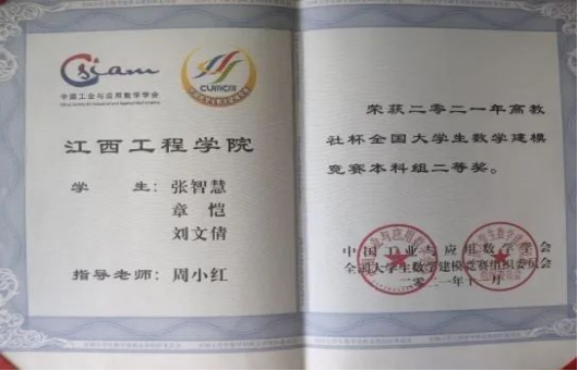 1.获得2021年全国大学生数学建模竞赛全国二等奖;