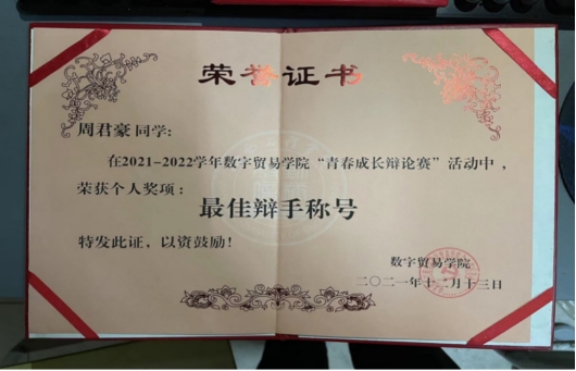 7.数字贸易学院“青春成长辩论赛”中“最佳辩手”荣誉称号