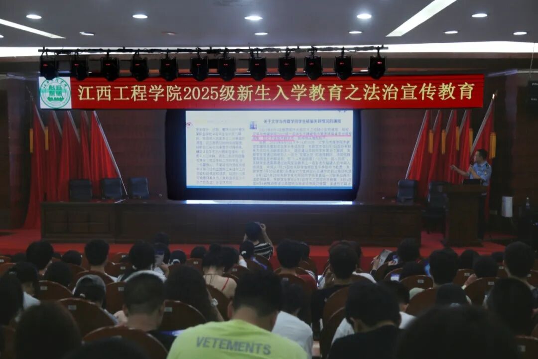 为深入学习贯彻习近平法治思想,全面落实教育部关于加强新时代高校法治宣传教育的工作要求,帮助新生增强法治观念,系好入学“第一粒法治扣子”,营造知法守法的校园氛围。2025年9月4日下午,江西工程学院开展2025级新生入学教育之法治宣传教育,经济管理学院组织2025级新生在学术报告厅现场收听收看。本次教育活动特别邀请新余市公安局网安支队、新余市公安局反诈中心、渝水区公安局禁毒大队的警官担任主讲。