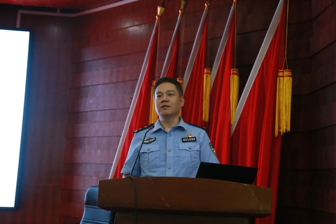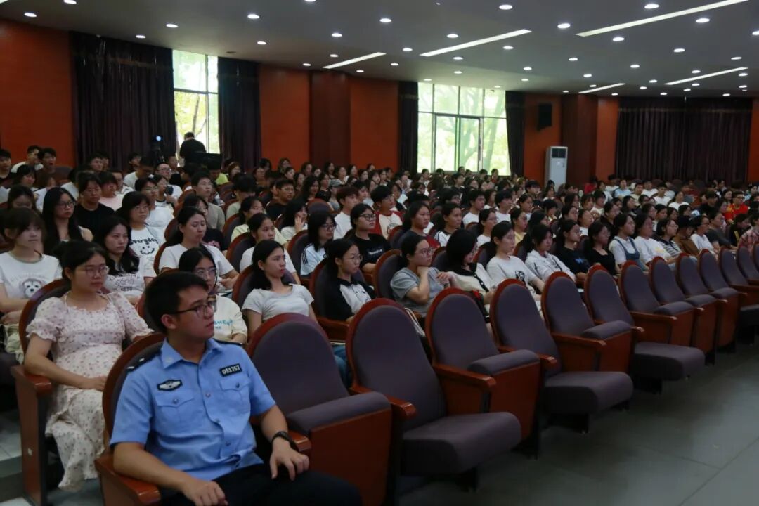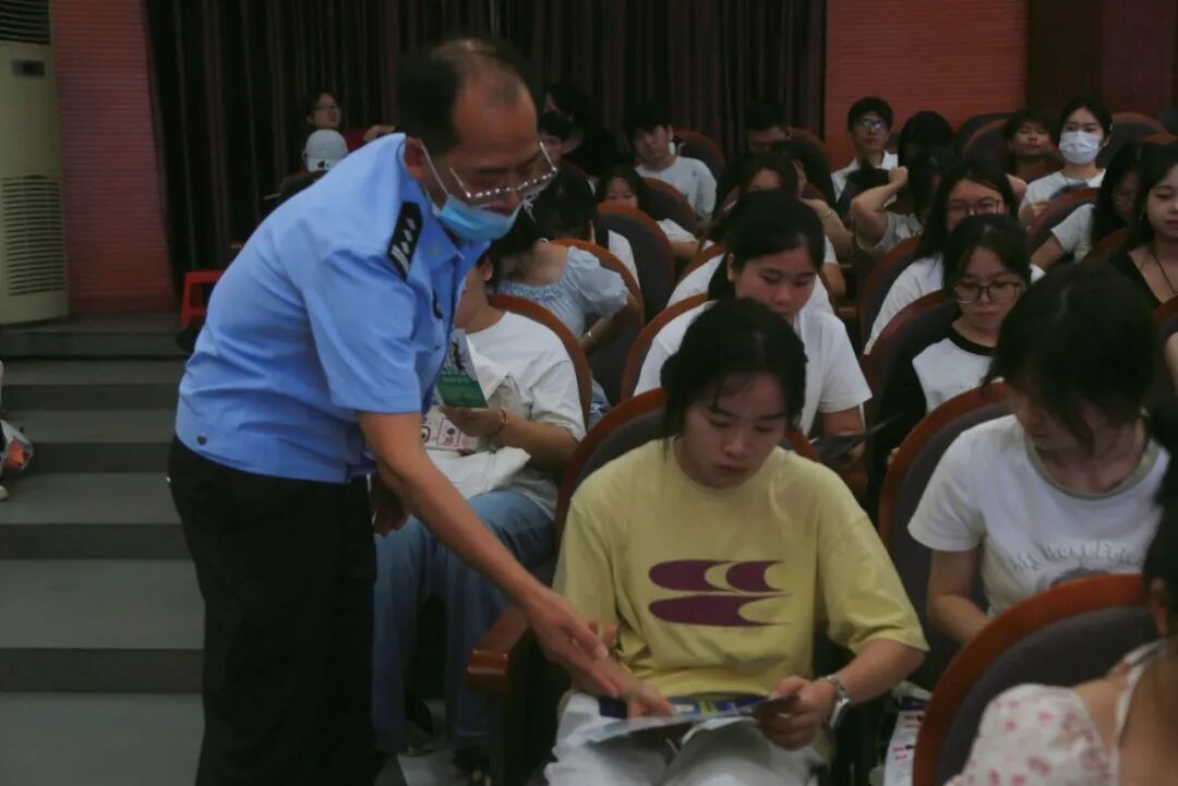 新余市公安局网安支队副支队长邹波以“守护数字家园,共享网络文明”为主题,聚焦网络安全,剖析网络违法犯罪危害,引导新生规范网络行为、远离网络风险;新余市公安局反诈中心晏明勇结合真实案例,系统讲解了网络诈骗的常见类型、新型手段以及防范技巧,重点剖析了“刷单返利”、“冒充客服”等高发案件的作案手法和心理陷阱。他提醒同学们要提高警惕,做到“三不一多”:不轻信、不透露、不转账,多核实。针对校园高发诈骗类型,讲解作案手法与识别技巧,教会新生用法律守护财产安全;渝水区公安局禁毒大队民警夏金介绍常见毒品危害与校园涉毒风险,引导新生树立“珍爱生命、拒绝毒品”意识。