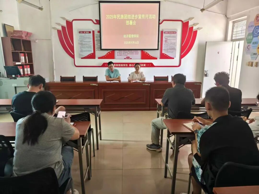 为全面贯彻习近平总书记关于加强和改进民族工作的重要思想,深入学习贯彻党的二十大和二十届二中、三中全会精神,以扎实推进学校2025年民族团结进步宣传月活动,9月16日,经济管理学院在A栋401会议室召开专题部署会,明确活动路径与责任分工,推动民族团结教育在学院落地生根。会议由党总支书记张文凤主持,学院院长谭文武出席,全体辅导员(班主任)参加。