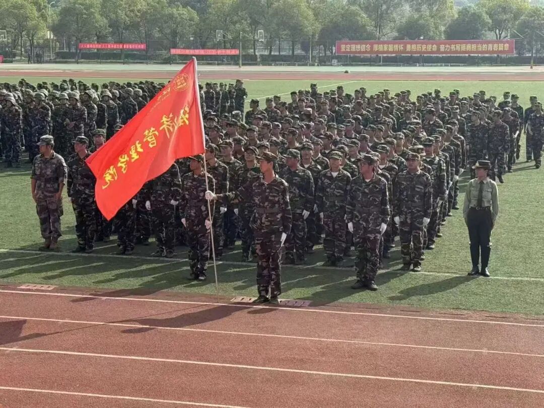 升旗仪式后,军训成果汇报正式开始。身着迷彩服的新生方阵依次登场,他们以整齐的队列、挺拔的身姿展现“稍息、立正、齐步走”等动作,军体拳表演更显刚劲有力,赢得现场阵阵掌声。随后,军训总教官对本次军训进行总结,肯定了新生在14天里克服高温、刻苦训练的精神,同时宣布了优秀军训标兵、先进班集体名单。校领导为获奖个人与集体颁奖,鲜红的荣誉证书成为新生们入学后的第一份成长勋章。