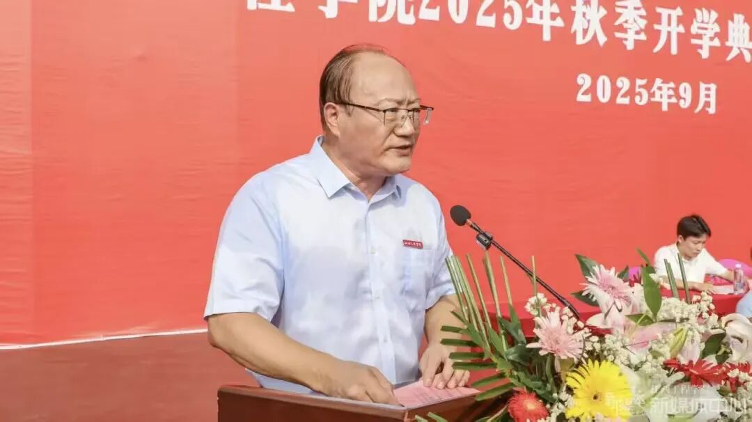 大会上,校长刘新跃以《逐光江工 共赴新程》为题发表讲话。他代表学校向全体2025级新生表示热烈欢迎,向辛勤培育学生的家长和老师致以崇高敬意和衷心感谢。同时,刘校长对江西工程学院的校名进行了详细解读,并深入阐释了校名背后所蕴含的时代价值、办学理念与精神内涵。