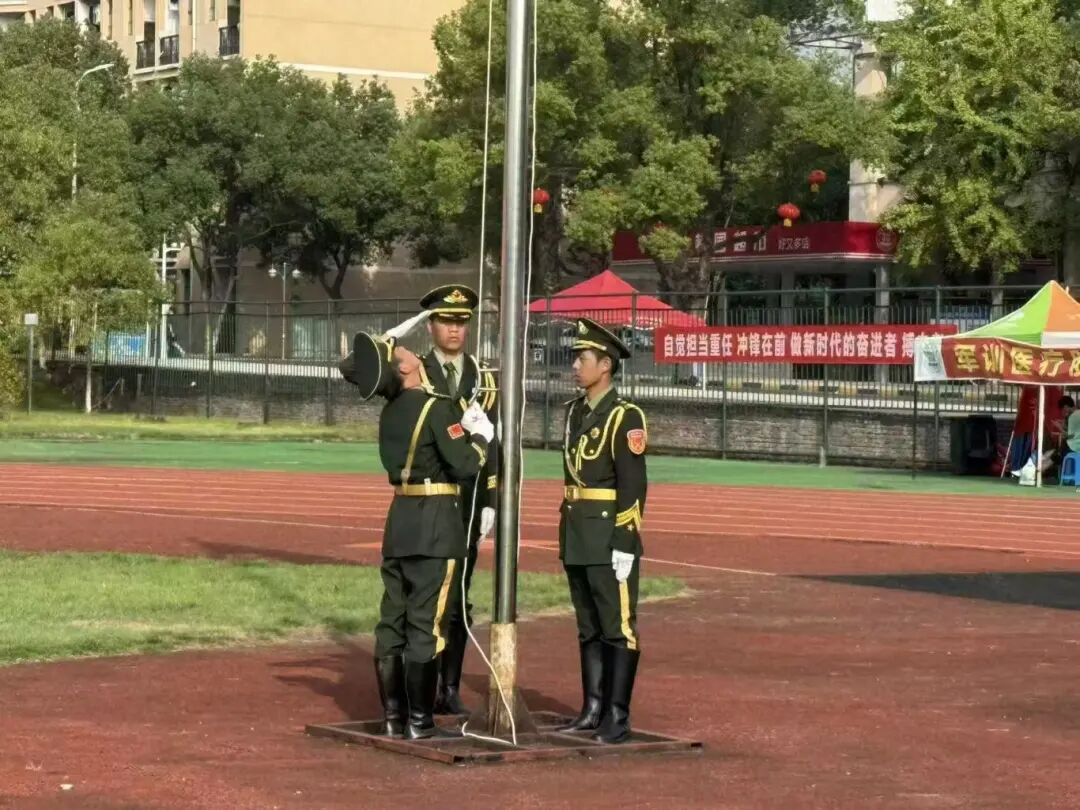 伴随着激昂的《义勇军进行曲》,开学典礼在庄严的升国旗仪式中拉开帷幕。护旗手迈着铿锵有力的步伐护送国旗入场,全体师生肃立行注目礼,嘹亮的国歌响彻校园,爱国情怀在每个人心中激荡。