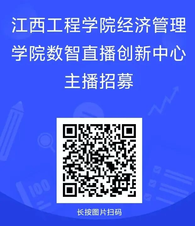 此次招募,旨在汇聚学院优质人才,共建高效、专业、充满活力的直播新生态。如果你对直播满怀热忱,欢迎加入江西工程学院数智直播创新中心,一起在镜头前绽放青春光彩,在创新创业实践中探索直播行业的无限可能!