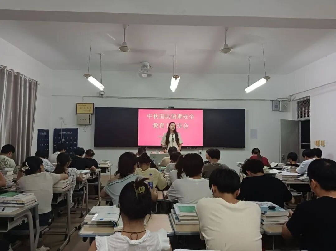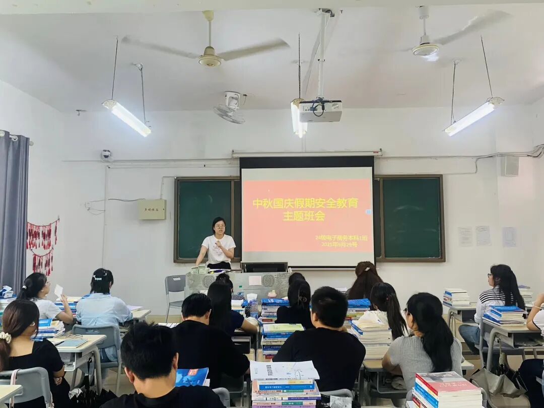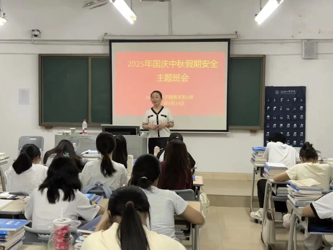 为切实筑牢假期安全防线,守护学生生命安全与身心健康,2025年9月29日晚上,经济管理学院组织各班开展2025年国庆中秋假期安全教育主题班会。此次班会由各班辅导员(班主任)主持,全体学生参与,实现安全教育全覆盖。