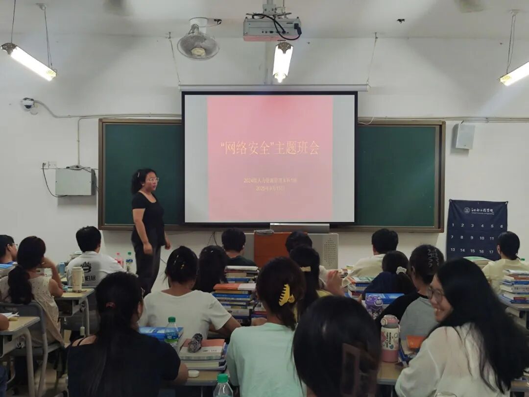 班会上,辅导员首先解读了《中华人民共和国网络安全法》等法律法规,强调了网络安全与个人信息保护的重要性。随后,通过展示典型案例,深入剖析了电信网络诈骗、个人信息泄露等常见风险,引导同学们树立正确的网络安全观。在互动环节,同学们围绕"如何安全使用网络"展开热烈讨论,分享了设置强密码、警惕钓鱼链接、合理使用社交平台等实用技巧。班会还特别强调了作为经管学子,应在网络空间中保持理性思考,不造谣、不信谣、不传谣,积极传播正能量。