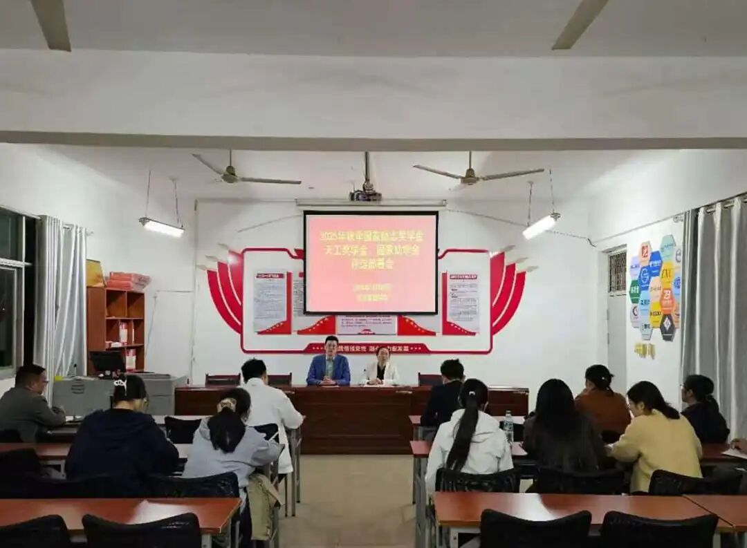 为切实做好2025年国家励志奖学金、国家助学金及校级天工奖学金的评选工作,确保评选过程公平、公正、公开,充分发挥奖助学金的激励与资助育人功能,2025年10月20日,经济管理学院在A栋教学楼401会议室召开2025年秋季国家励志奖学金、天工奖学金、国家助学金评选部署会。此次会议由经济管理学院院长谭文武主持,党总支书记张文凤及全体辅导员(班主任)参加。