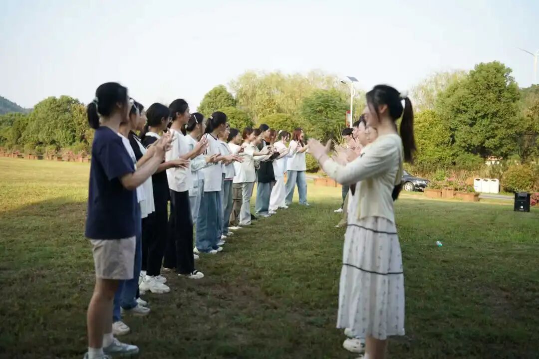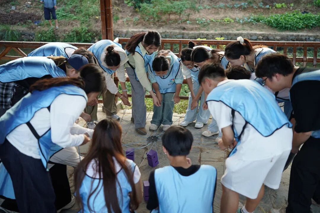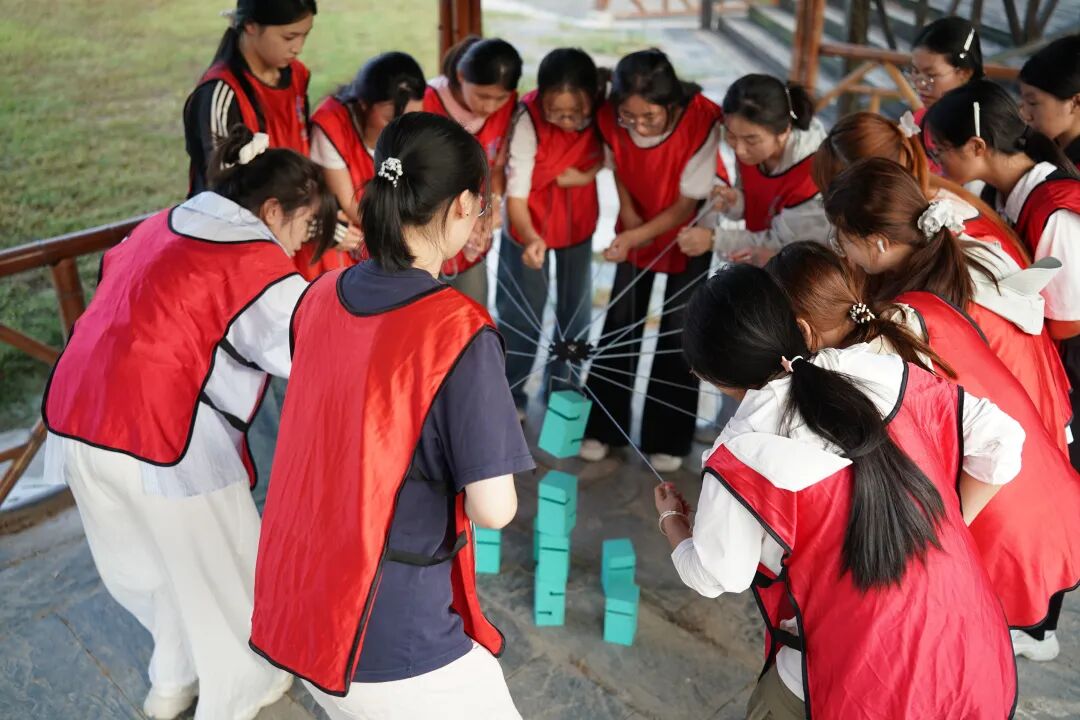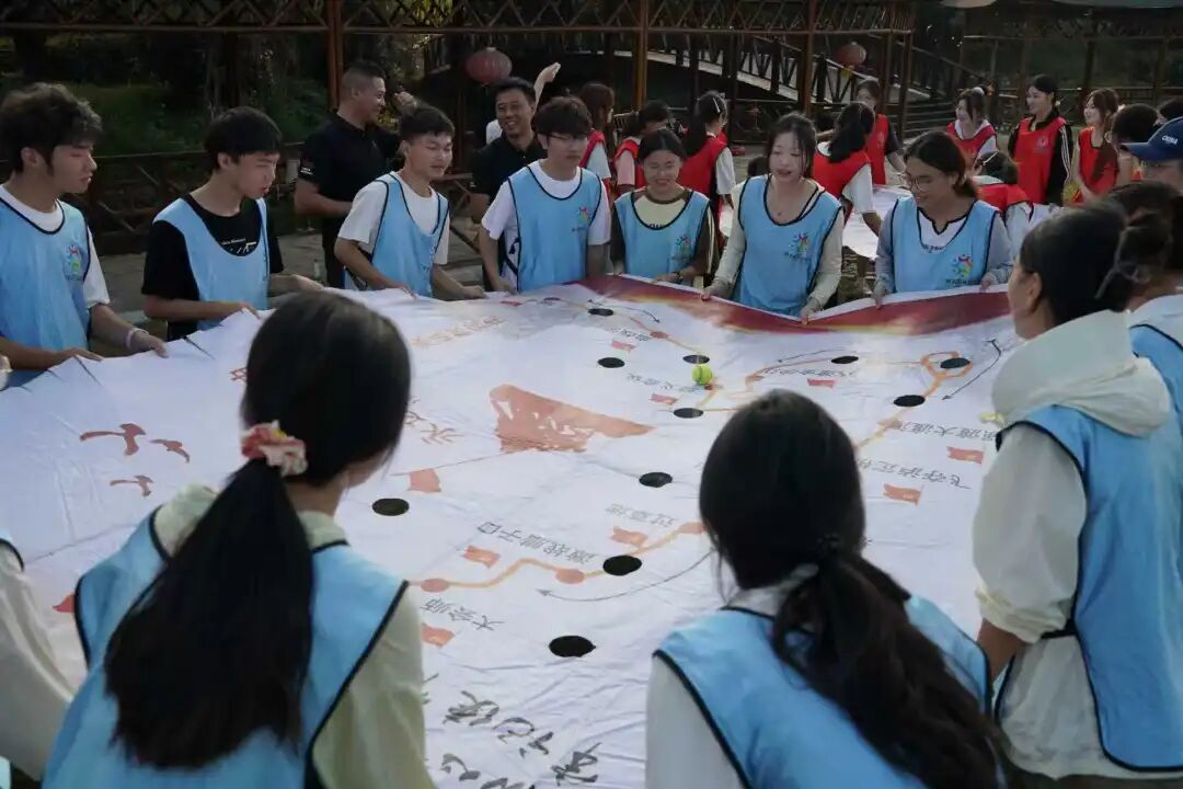 接着,来到红色拓展环节,“合力筑塔”模拟“支部建在连上”,全队拉绳协作搭建9层“堡垒”,让同学们体悟组织强基的力量;“重走长征路”在巨型地图运球闯关与党史答题中,将智慧与协作转化为前进动力;“齐头并进”的踏板鞋接力,则以“步调一致”的实践诠释团结制胜的真理。