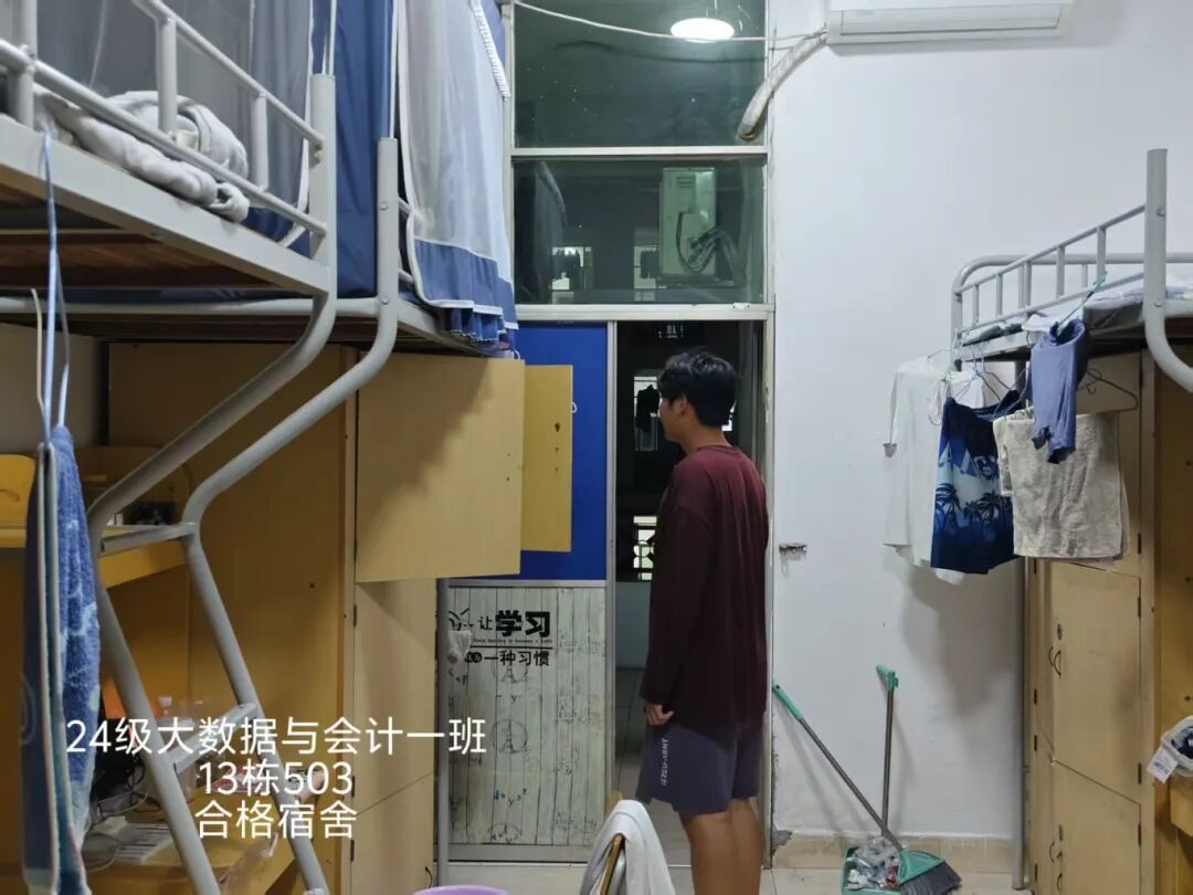 同学们以寝室为单位,分工明确、默契配合。同时有序开展宿舍卫生清洁、内务整理和环境美化工作。对宿舍地面、卫生间等区域进行了全面清扫,彻底清理了垃圾和杂物;认真整理了个人衣物、书籍等物品,确保桌面、床铺和衣柜整洁有序;部分学生还结合宿舍实际情况,对宿舍环境进行了个性化布置,使宿舍环境更加温馨舒适。