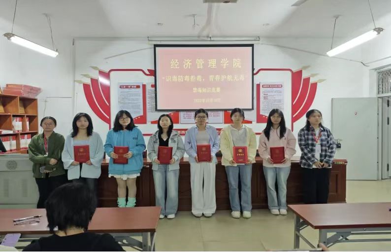 活动结束后,经济管理学院为获奖选手颁发荣誉证书。此次禁毒知识竞赛,不仅让经管学子掌握了实用的禁毒知识,更在校园内营造了“人人防毒”的浓厚氛围,让“珍爱生命、远离毒品”的理念深植每一位青年心中,引导青年学子以青春之我、奋斗之我,筑牢禁毒防线,守护无毒校园,让青春在阳光下安全绽放!今后,经济管理学院将继续举办各种各样的活动,推动学生全面发展,建设美丽校园。