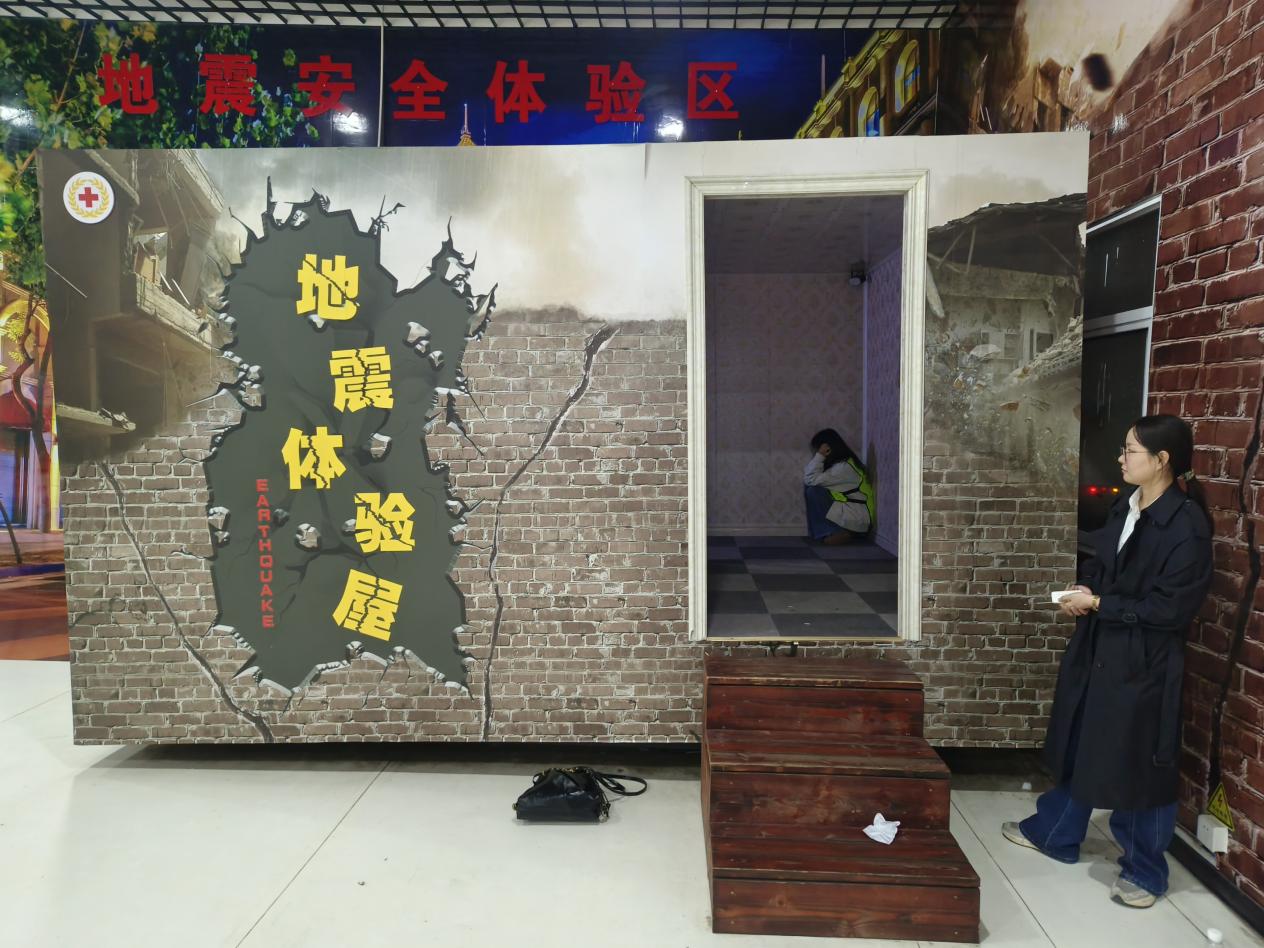 用电安全互动区通过触电体验装置直观感受电流危害,地震应急体验区则在6级模拟地震平台上训练“伏地、遮挡、手抓牢”避险要领。此外,师生还通过互动游戏快速识别消防、交通、应急标识,强化安全信息感知能力。智管融合,构建安全治理新生态
