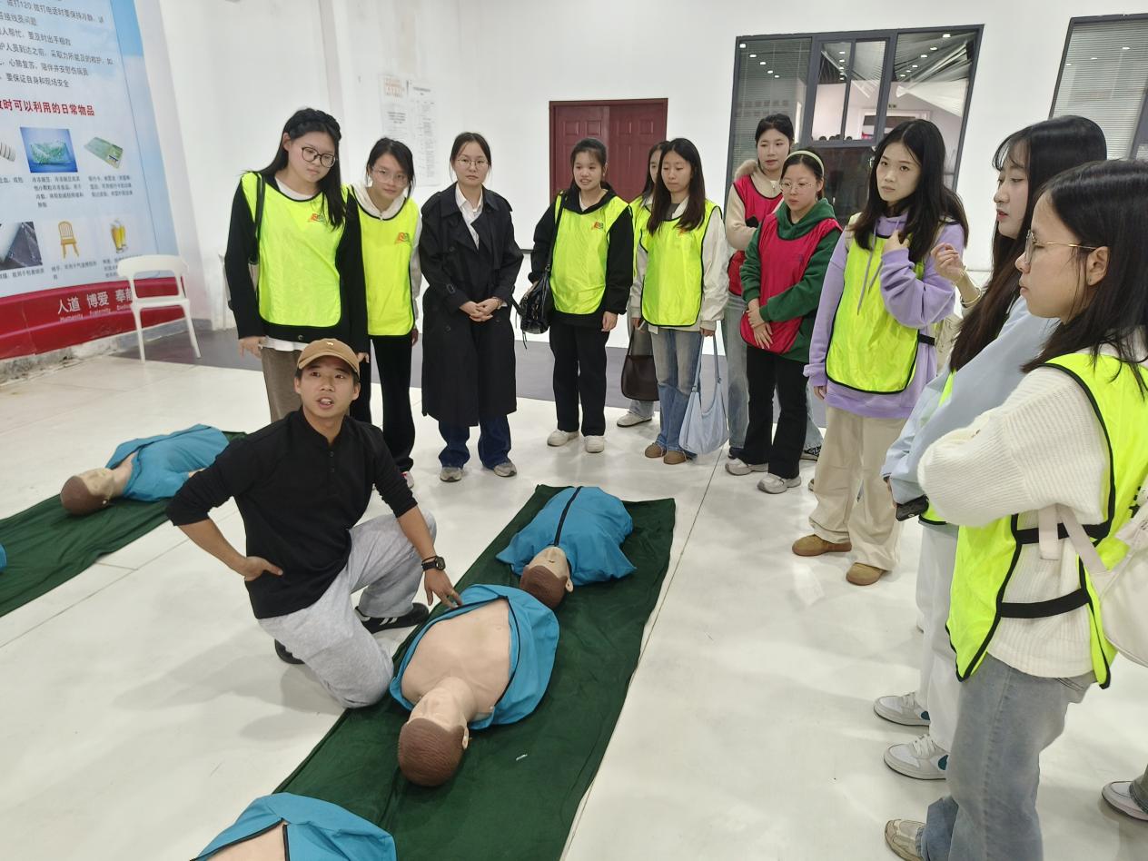 在博迅应急安全科普教育基地,师生们通过“理论+实操+情景模拟”的立体化教学模式,系统学习了涵盖消防、交通、急救、用电、地震等多领域的安全知识。专业教官现场演示灭火器“提、拔、握、压”四步操作法及消防栓快速连接技巧,师生分组进行油盆灭火实战演练,并借助VR设备模拟高层火灾逃生场景。在急救技能实训环节,师生通过智能模型人实践心肺复苏(CPR)标准流程,掌握AED自动体外除颤器操作要领,并针对异物卡喉场景演练海姆立克急救法。