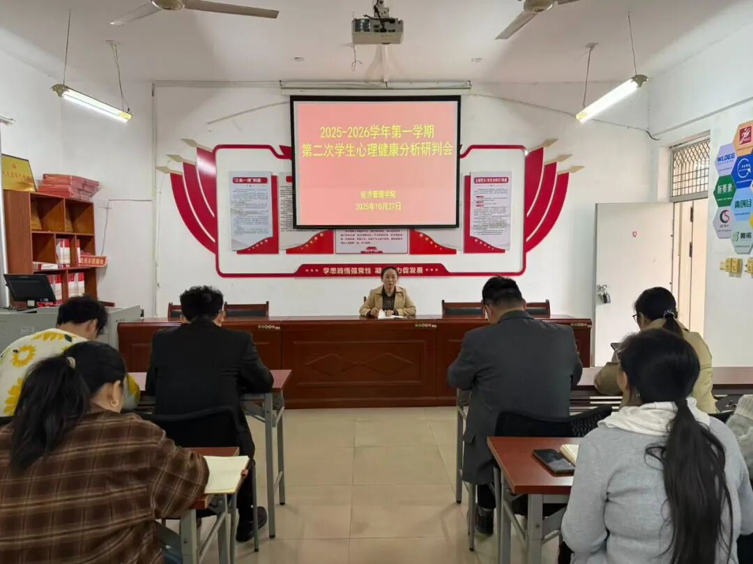 为进一步强化学生心理健康教育工作,培养积极的心理素质。10月27日,经济管理学院在A栋401会议室召开了2025—2026学年第二次学生心理健康分析研判会。此次会议由党总支书记张文凤主持,学院各辅导员(班主任)共同参与。