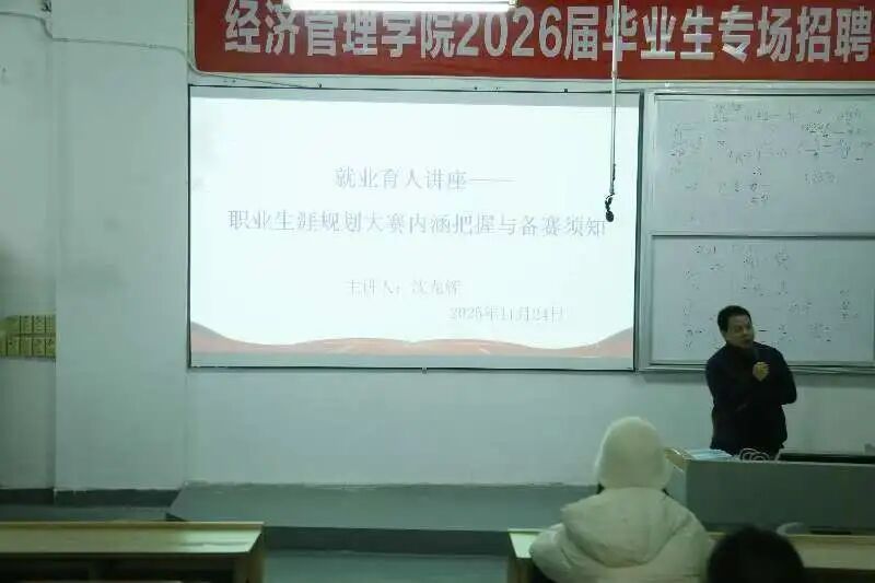 为助力学生精准把握职业规划大赛内涵,提升备赛效率,11月24日,经济管理学院在C105教室组织开展职业规划大赛内涵把握与备赛须知指导讲座。本次讲座由副教授、就业指导教师沈龙辉主讲,经济管理学院各班级代表积极参加。