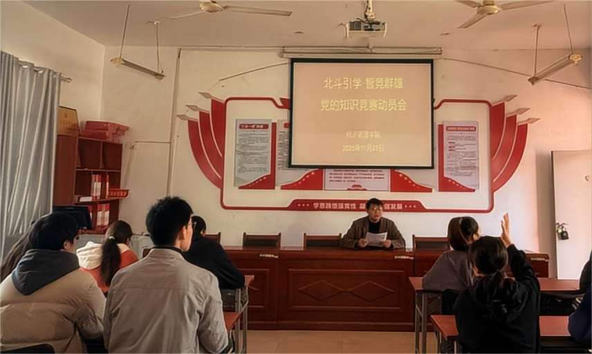 为鼓励学院学生党员、入党积极分子及入党申请人积极参与即将举办的党的知识竞赛,深化对党的理论知识的学习与理解。11月21日,经济管理学院组织召开“北斗引学·智竞群雄”党的知识竞赛动员会,会议由学院党总支副书记郭远峰主持,学生党员、入党积极分子及入党申请人代表参加。