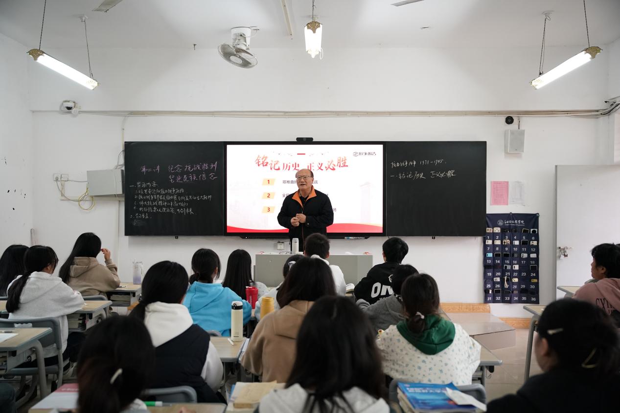 在联系班级环节,刘新跃走进挂点的2024级财务管理本科2班,全面了解学生思想动态、专业学习、家庭情况及班风学风建设等情况,通过亲切交流引导学生树立正确的世界观、人生观、价值观。期间,他以“纪念抗战胜利,坚定民族信念”为题讲授思政课,深入阐释抗战历史的精神内核与民族精神的时代内涵,带领学生在历史与现实的交融中汲取奋进力量。同学们纷纷表示,将把学校的关怀转化为爱国爱校、笃行实干的动力,厚植爱国情怀,潜心钻研专业知识、锤炼综合素养,以实际行动回馈学校的殷切期望。
