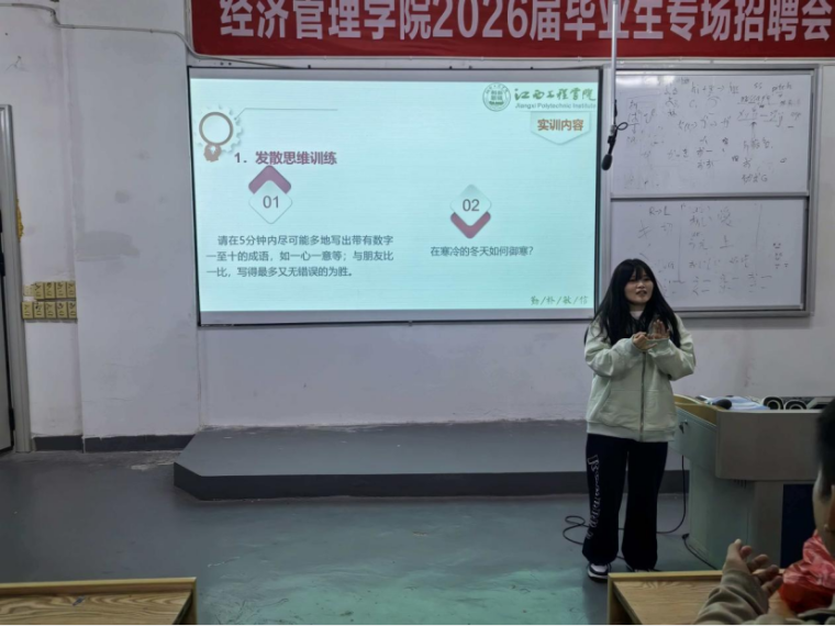 在新一轮科技革命和产业变革加速演进的背景下,创新思维已成为当代青年人突破竞争壁垒、塑造核心竞争力的关键支撑。为破解经济管理学子在学习中存在的“重理论、轻创新”同质化难题,推动专业知识向实际问题解决能力的转化,12月8日,经济管理学院在C105多媒体教室举办“打破定势,激发潜力”培养创新思维主题讲座,讲座邀请到了副教授、SYB创业培训讲师彭燕老师担任主讲,经济管理学院各班级代表积极参加。