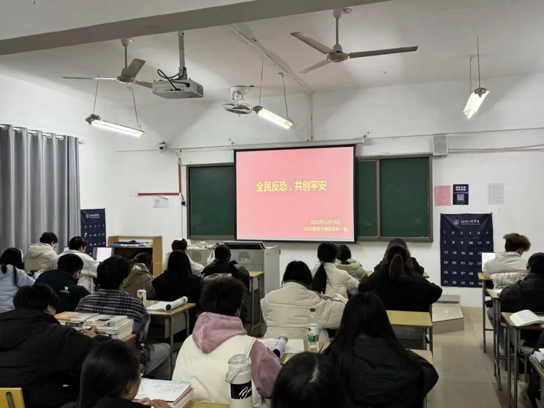 2025年12月27日是第十个全国反恐怖公众宣传日。为切实增强师生的反恐防恐意识,提升应对突发恐怖事件的自救互救能力,筑牢校园安全防线。12月15日,经济管理学院组织各班级开展“全民反恐,共创平安”反恐怖宣传教育主题班会,引导全院学子认清恐怖主义危害,争做反恐防恐的践行者与宣传员。
