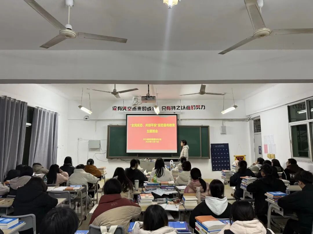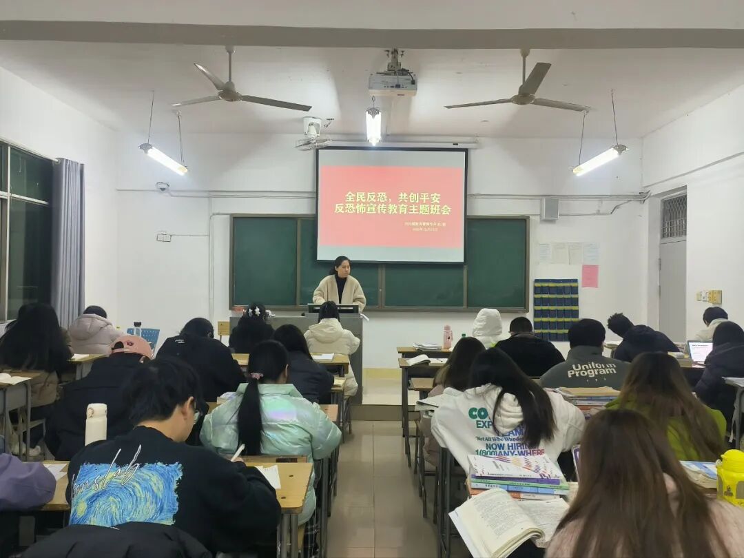 此外,辅导员(班主任)强调,遇到突发情况要牢记“保持冷静、迅速撤离、及时报警、自救互助”的原则,掌握紧急疏散和自救逃生的技能,最大限度保护自身生命安全。之后班会还通过播放反恐宣传短片等形式,让同学们更直观地了解反恐防恐工作的重要性,更深刻认识到反恐防恐不是一句口号,而是需要全体公民共同参与的社会责任。