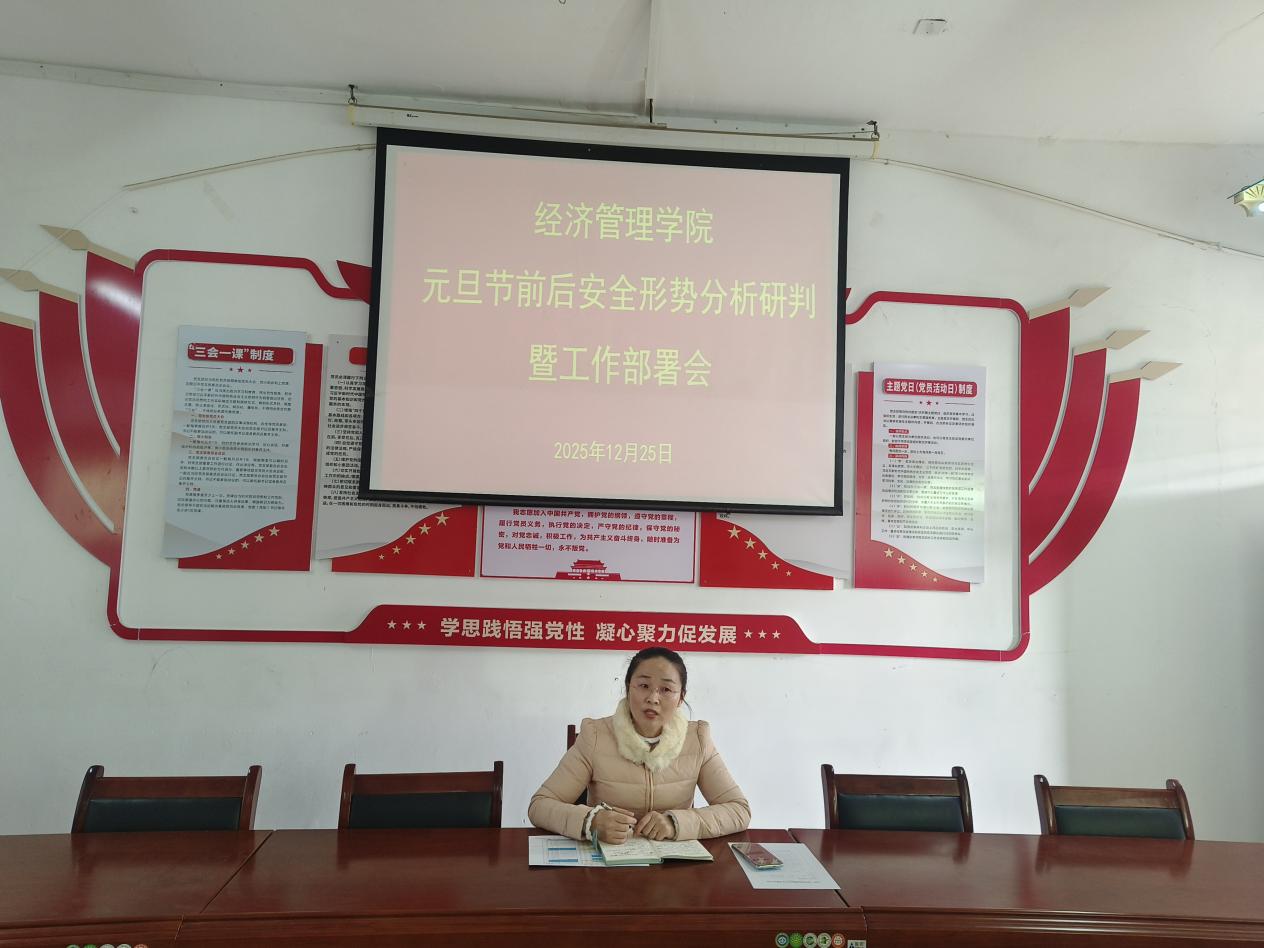 学院党总支书记张文凤在总结中强调,安全工作是学院发展的底线,全体师生需以“时时放心不下”的责任感落实各项措施,共同营造平安和谐的校园环境,为新一年工作开好局、起好步。此次会议的召开,体现了经济管理学院对元旦节前后安全工作的高度重视。学院将以此次会议为契机,进一步强化安全责任意识,细化安全工作措施,确保元旦节前后学院安全形势稳定,为师生创造一个安全、和谐、稳定的校园环境。