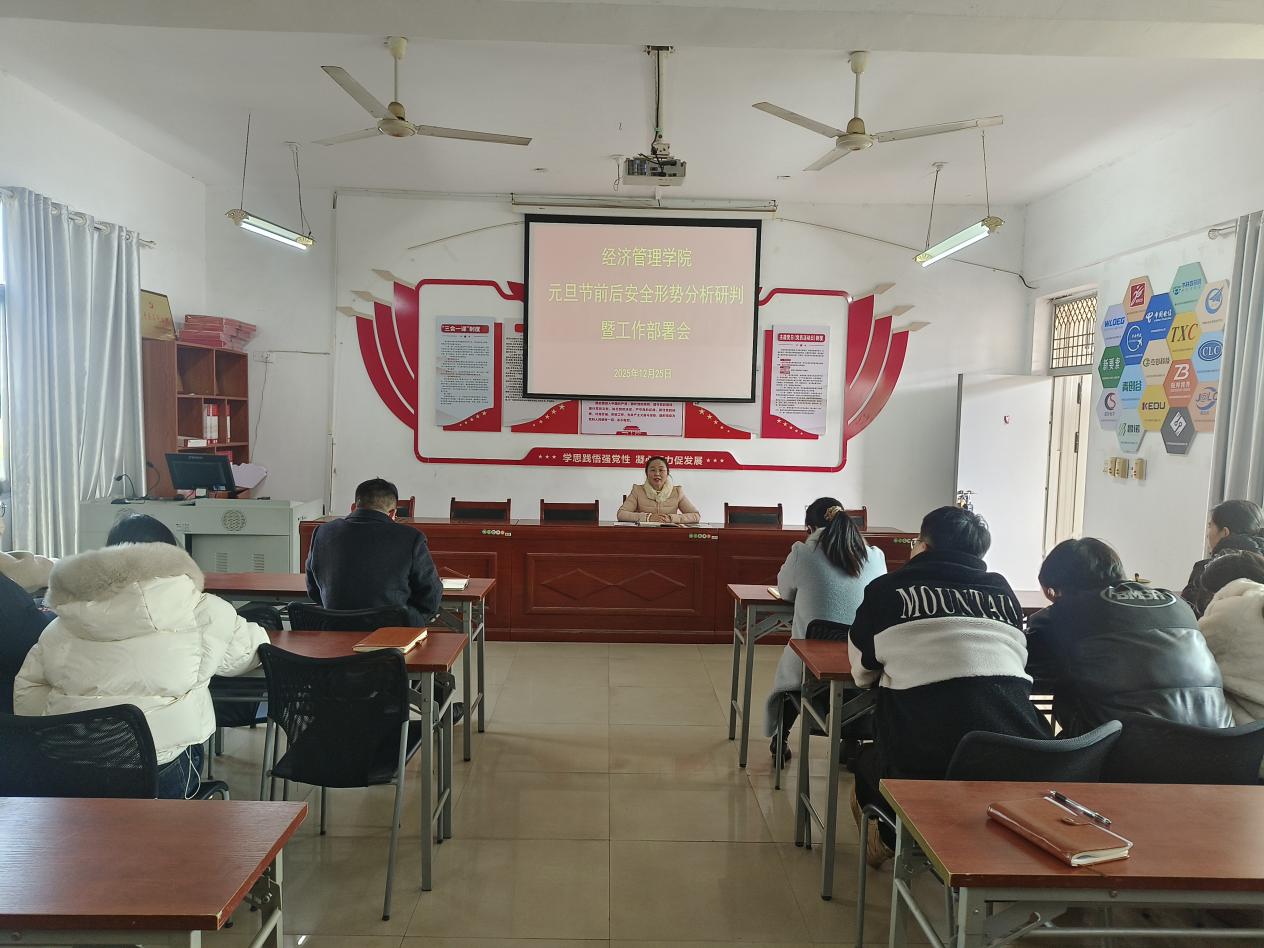 为切实做好元旦假期前后校园安全稳定工作,提高师生安全防范意识,12月25日下午,经济管理学院召开元旦节前后安全形势分析研判暨工作部署会。学院党总支书记张文凤主持会议,全体辅导员(班主任)参加。