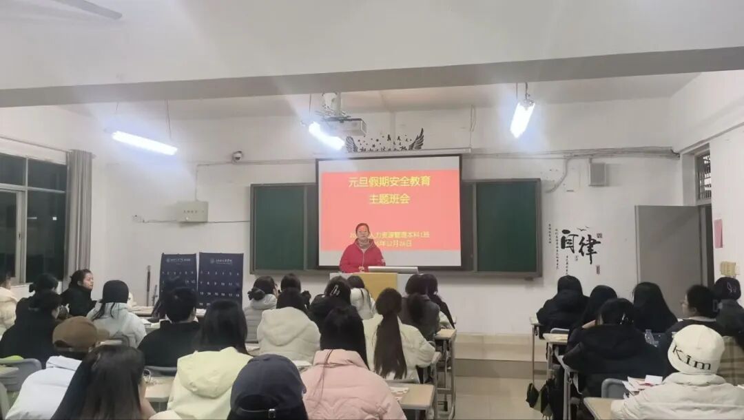 为切实履行学生安全管理职责,有效防范假期各类安全隐患,全面提升学生假期自我保护能力,经济管理学院精心组织各班级开展元旦假期安全教育主题班会,为全体学子送上一堂干货满满的安全防护课。