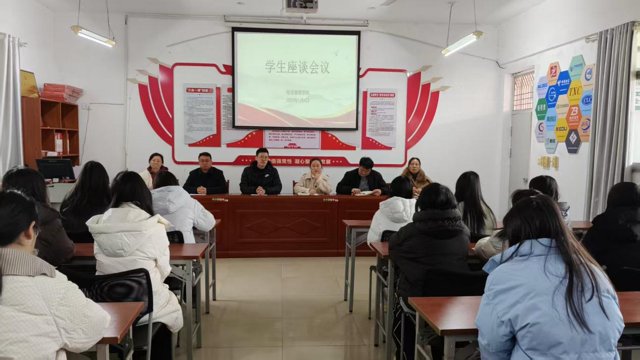 为搭建学院与学生沟通交流的桥梁,倾听学生心声,了解学生需求,进一步优化教育教学管理服务,促进学生的全面发展,2026年1月3日,经济管理学院在A401会议室召开学期末学生座谈会。学院院长谭文武、党总支书记张文凤、学院领导班子成员、教学督导及来自各年级、各专业的20余名学生代表齐聚一堂,共同为学院发展建言献策。会议由经济管理学院党总支书记张文凤主持。