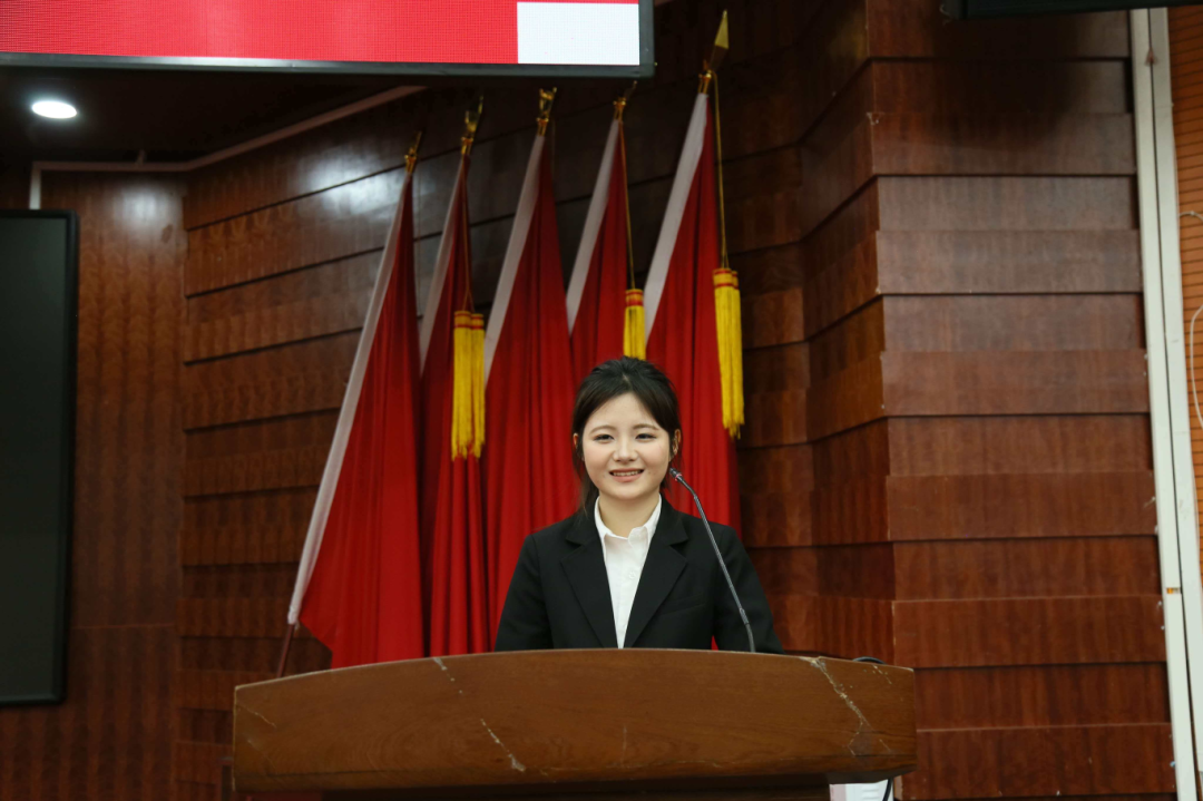 大会第六项议程,新一届团总支学生副书记吴雅茜讲话,过去一年,团总支学生会始终把“同学”二字放在工作核心,紧扣学校工作重点、聚焦团学主责主业,取得了显著成效。谈及新征程,她提出团学工作要走好“传承与创新”的双线道路:既要持续凝聚青年力量,汇集同学们的心声与建议,在服务的本质上强化思想引领;也要打破固有思维,在传承优良工作传统的基础上大胆创新,让团学活动更贴合青年需求、更具时代活力。