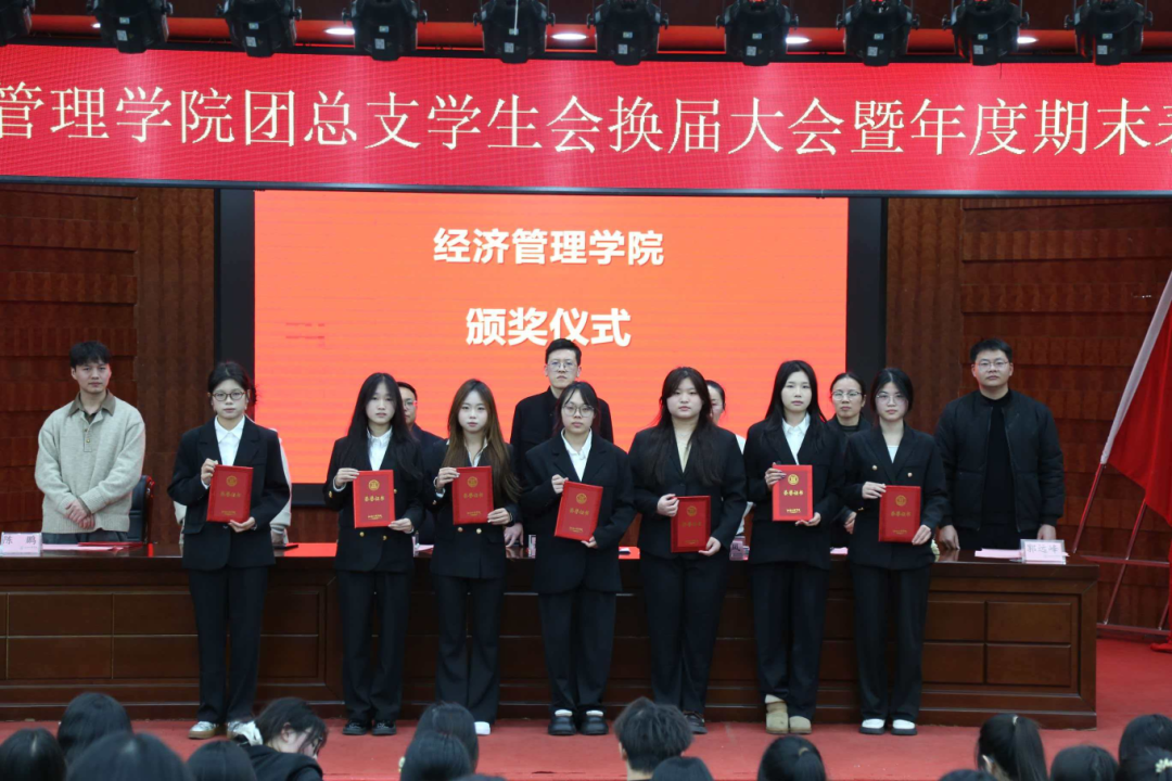 会后,与会师生合影留念,定格下这一意义非凡的时刻。此次大会不仅完成了团总支学生会的换届交接,更以表彰先进为契机凝聚了学院力量。未来,经管学子将继续以榜样为帆,以责任为桨,在青春的赛道上书写属于自己的精彩答卷。