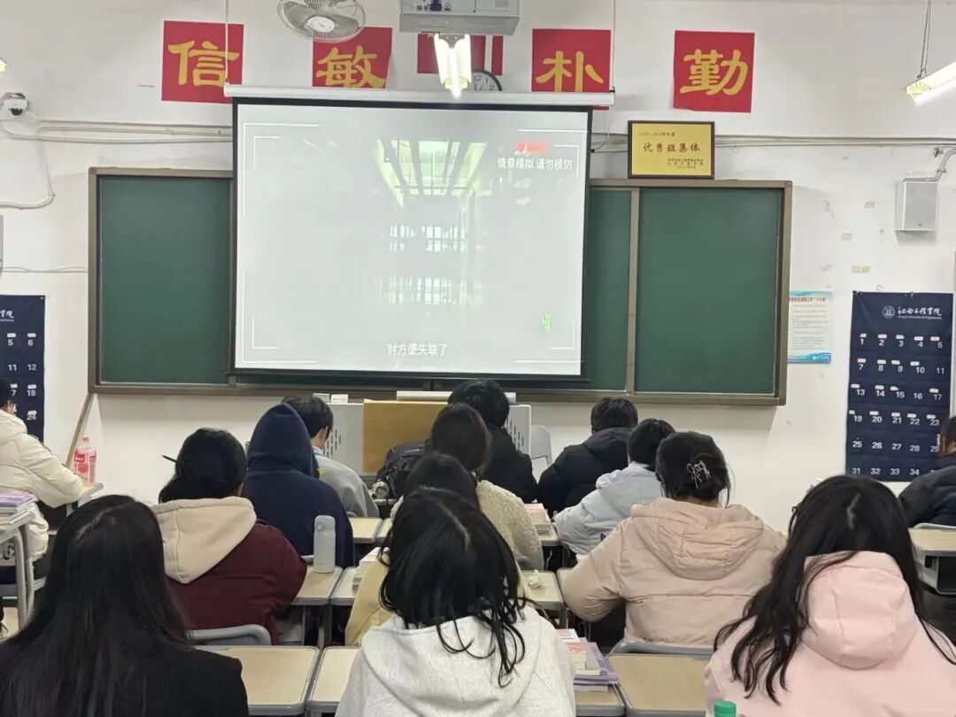 在数字时代飞速发展的今天,网络已成为我们学习、生活、社交不可或缺的一部分,但网络陷阱、信息泄露、网络谣言等安全隐患也随之而来。班会伊始,各班辅导员(班主任)围绕个人信息保护、防范网络诈骗、辨别网络谣言、理性上网、远离不良信息等核心内容,结合真实案例、短视频与趣味问答,用通俗易懂的语言讲解了网络安全知识。从钓鱼网站的识别技巧,到社交平台隐私设置的重要性;从校园常见的刷单诈骗、游戏账号交易骗局,到不轻信、不转发、不传播网络谣言,每一个知识点都贴近日常、直击重点。