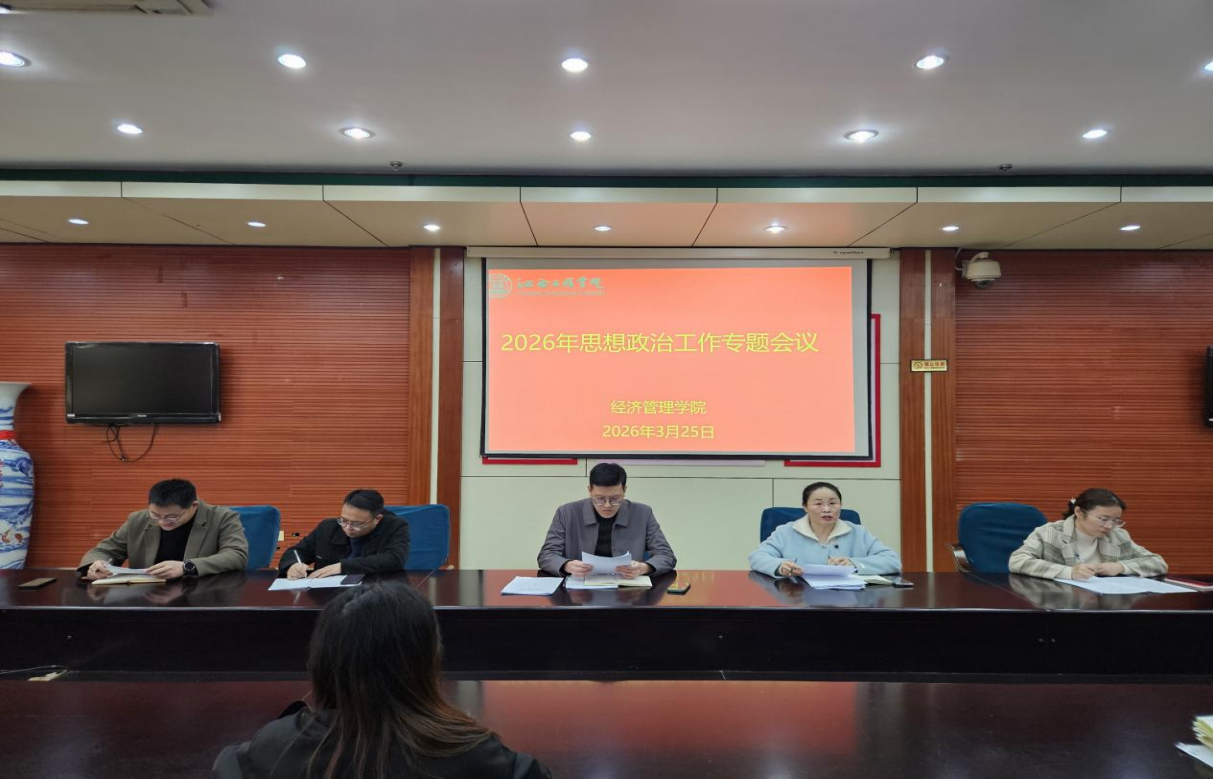 为深入学习贯彻习近平总书记关于思想政治工作的重要论述,全面落实上级相关工作部署,进一步压实思想政治工作责任,有效防范和化解各类风险隐患,3月25日,经济管理学院在图文信息中心403会议室召开了2026年思想政治工作专题会议。会议由学院党总支书记张文凤主持,学院领导班子成员及全体教师参加。