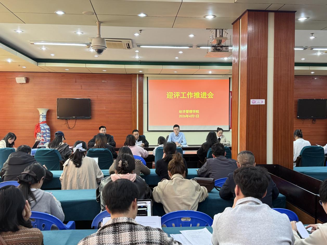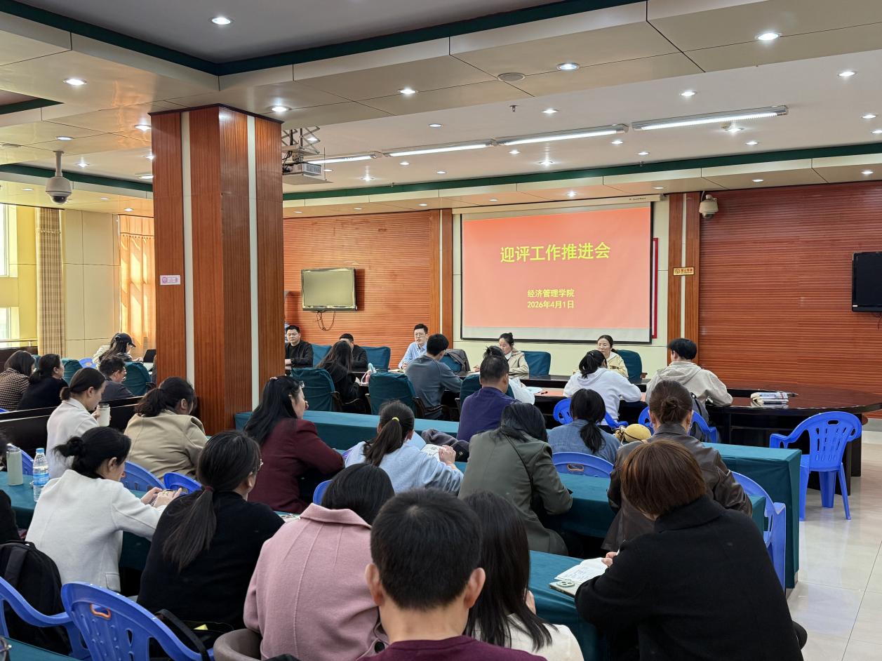 4月1日,经济管理学院召开迎评工作推进会,旨在全面梳理和提升学院各项工作水平,以最佳状态迎接即将到来的评估工作。此次会议由经济管理学院院长谭文武主持,学院全体教师齐聚一堂,共同为学院的迎评工作出谋划策、贡献力量。