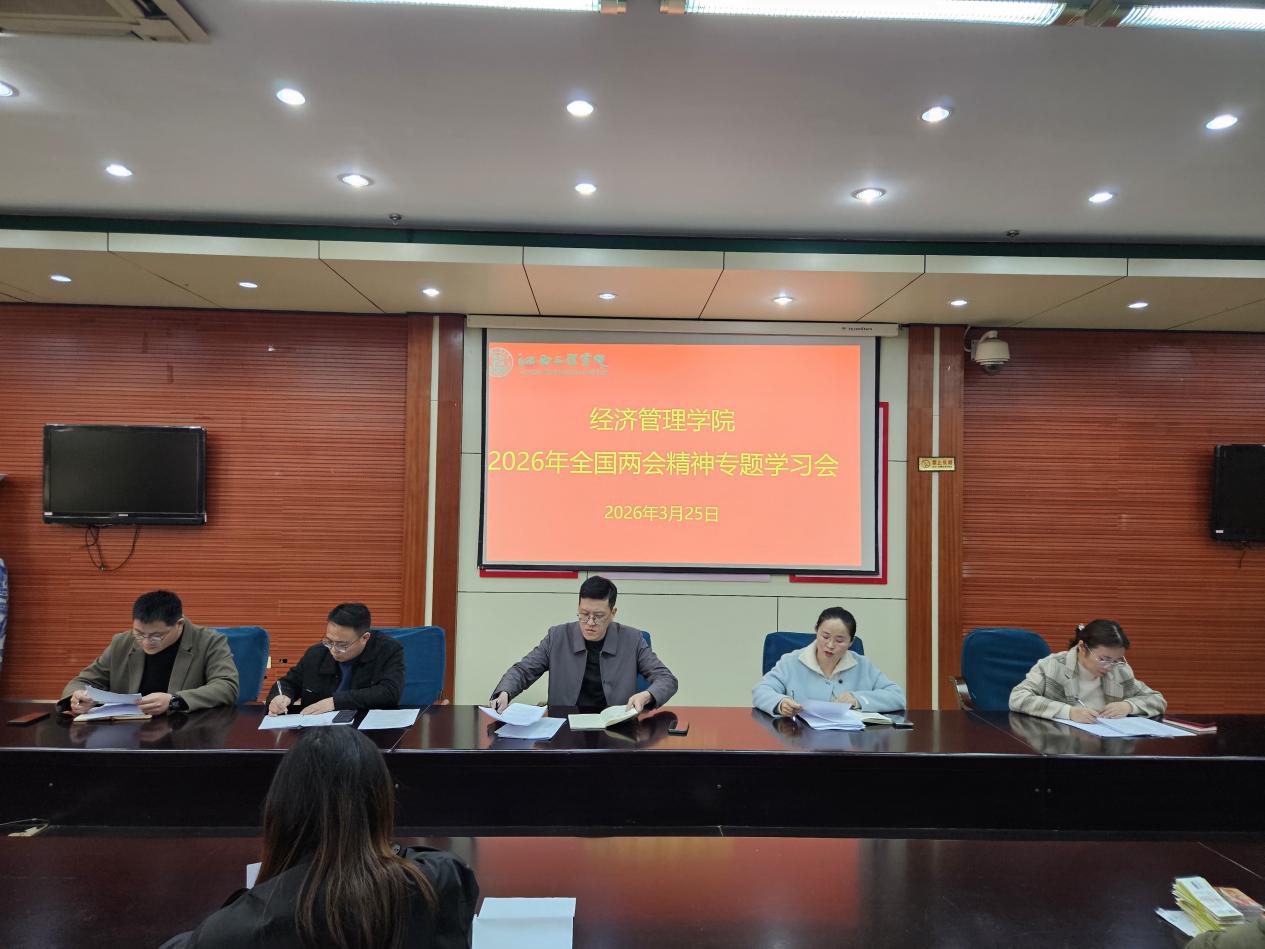 3月25日,经济管理学院在图文信息中心403会议室召开了2026年全国两会精神专题学习会,传达学习习近平总书记在全国两会期间的重要讲话精神和全国两会精神,研究学院贯彻落实意见。学院党总支书记张文凤主持会议,学院领导班子成员、全体教师参加会议。