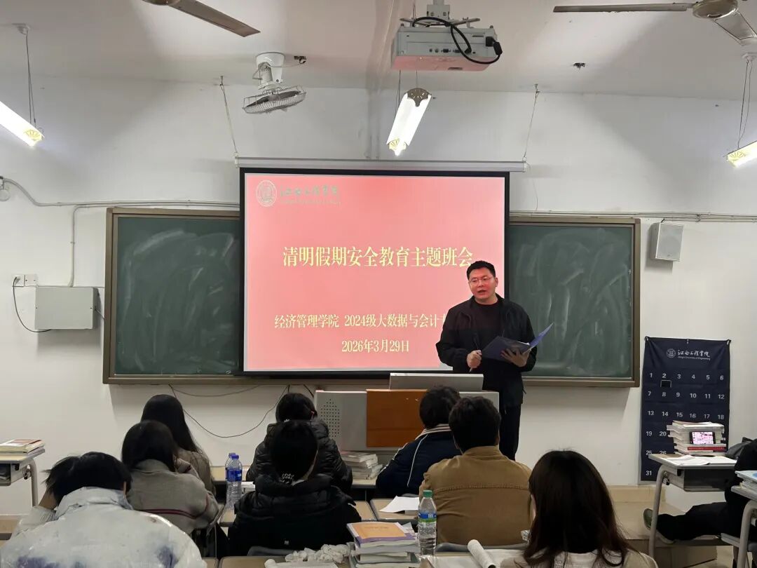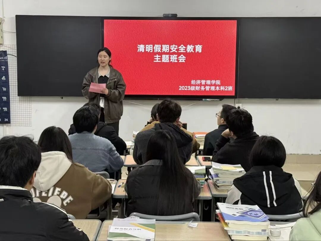 为增强学生假期安全意识,切实筑牢清明假期安全防线,近日,经济管理学院组织各班级陆续开展清明假期安全教育主题班会。
