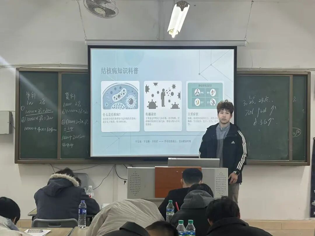 熊康明同学围绕结核病知识科普展开演讲,讲解结核病传播途径、典型症状与校园防控要点,强调勤通风、讲卫生、早就医的重要性,引导同学们增强健康防护意识,共建安全健康的校园环境。