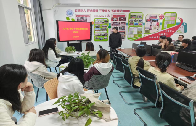 会议伊始,学院学生会负责人介绍了项目的立项背景。当前,大学生在学业、就业、人际交往等方面承受多重压力,心理健康已成为影响学生成长发展的重要因素之一。经济管理学院立足实际,充分发挥“北斗星·智管”党建品牌的引领作用,将心理健康教育纳入党建工作整体规划,着力打造“党建+心育”协同育人新机制。项目围绕“德、智、体、美、劳”五育融合理念,系统设计了五大活动模块。该项目以提升学生心理韧性、自我认知能力和社会适应能力为核心目标,通过强化党建引领、普及心理知识、构建支持网络、营造积极氛围等多措并举,力求形成全员参与、全过程覆盖、全方位渗透的心理健康工作格局。